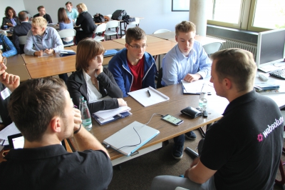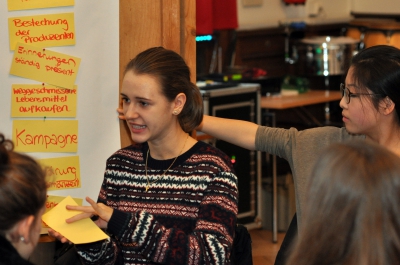 Nach den beiden Kick-Off-Veranstaltungen (6.10. und 21.12.2015), bei denen die Teilnehmer_innen zusammen mit den Auftraggeber_innen den Auftrag schärften, fanden auftragsspezifische Workshops statt. Die Schüler_innen konnten diese aus einem Potpourri von möglichen Workshops aussuchen und so zusätzliche Qualifikationen erwerben, die entweder für die Gruppe oder den Auftrag wichtig waren, wie z.B. Workshops zu „Kreativitätstechniken“ oder „Projektmanagement“.