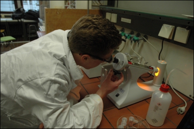 Im Rahmen des Projektauftrags sollen die Schüler eine Flüssigkeitskammer bauen, in der der lebende Polyp für die Mikroskopie lebend fixiert und immobilisiert werden kann. Auftraggeber: Philipps Universität Marburg, Frau Prof. Hassel. Teilnehmer: René Ruhs; Nils Andre Schäfer; Tim Luca Eggers; Till Christian Nijenhuis (Herderschule Gießen)