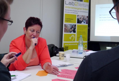 Viele ganz praktische Aspekte standen im Mittelpunkt des Qualifizierungsworkshops von Lab2Venture in Berlin. Neben Einführungen zu Kreativitätstechniken, Projektmanagement und der Förderung von Entrepreneurial Skills tauschten sich die Teilnehmenden auch aus über rechtliche Fragen der Projektumsetzung, über Wirtschaftlichkeit, geeignete Räumlichkeiten oder den erforderlichen Betreuungsaufwand für die Lehrkräfte.
