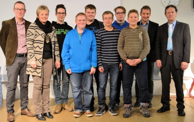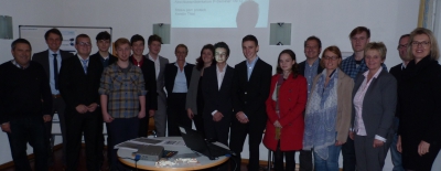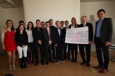 Die P-Seminar-Gruppe mit MB Rühl bei der Preisübergabe