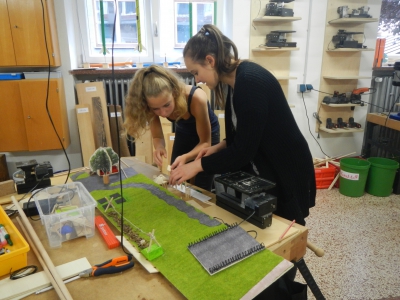 Am 3. Projekttag gingen die Schülerinnen bei ihren Modellen schon ins Detail. Die praktische Arbeit macht den Schülerinnen sichtlich Spaß.