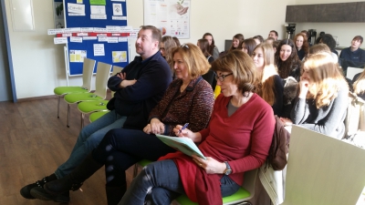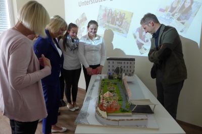 Die Schülerinnen waren schon lange vor Beginn der Veranstaltung im Schülerforschungszentrum, um ihre Präsentationen noch einmal zu proben und Fotos von ihren Modellen zu machen. Die Aufregung war grenzenlos, aber nach erfolgter Begrüssung durch die Geschäftsführung des Schülerforschungszentrums und Elke Becker, die extra aus Karlsruhe angereist war, gingen alle konzentriert an die Präsentation. Die Schulleiterin und die anwesenden Lehrkräfte waren begeistert von den Ideen der Mädchen und versprachen, möglichst viele der Ideen umzusetzen. Geplant ist von der Schulleitung, dass die Mädchen ihre Modelle auch noch vor den Zuständigen des Ordinariats präsentieren.
