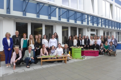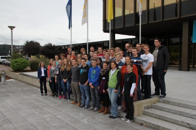 Auf dem Foto die Klasse 9 a der Rupertiwinkel RS in Freilassing mit dem betreuenden Lehrer Franz Stempfer und Petra Moderegger vom Schülerforschungszentrum.