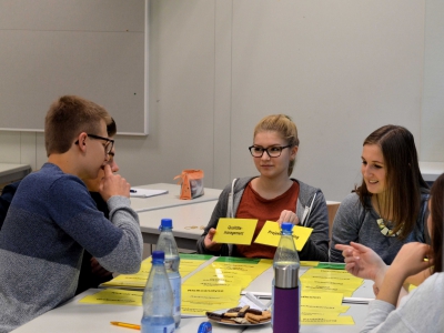 Workshop für teilnehmende Schülerinnen und Schüler zum Thema Projektmanagement nach der TheoPrax Methode und Teambuilding durch Theoprax und DKJS