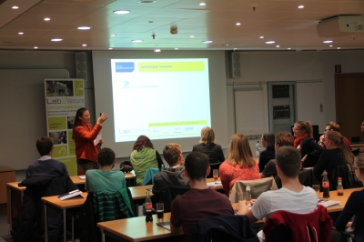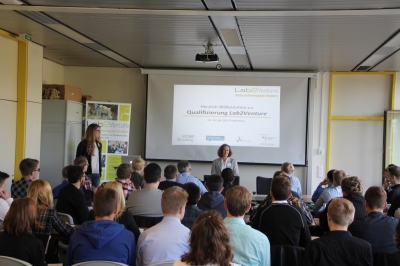 Jetzt beteiligt sich das NatLab mit elf weiteren Schülerlaboren aus ganz Deutschland an „Lab2Venture plus“, das wie die erste Ausschreibung vom Bundesministerium für Wirtschaft und Energie gefördert wird. Sehr positiv hat sich die frühzeitige Einbindung der Lehrkräfte und studentischen Betreuer_innen der Schülerlabore bemerkbar gemacht. Sowohl am Auftaktworkshop am 06.12.2014 am Bundesministerium für Wirtschaft und Energie, der gemeinsam vom TheoPrax-Zentrum des Fraunhofer ICT, der Deutschen Kinder- und Jugendstiftung (DKJS) und LernortLabor - Bundesverband der Schülerlabore e.V. durchgeführt wurde, als auch beim Qualifizierungs-Workshop im Juli 2015 waren die Lehrkräfte und Labormitarbeiter_innen beteiligt. Die betreuenden Studierenden waren beim Qualifizierungs-Workshop beteiligt, was sie gut auf die Arbeit mit den Schüler_innen vorbereitet hat.